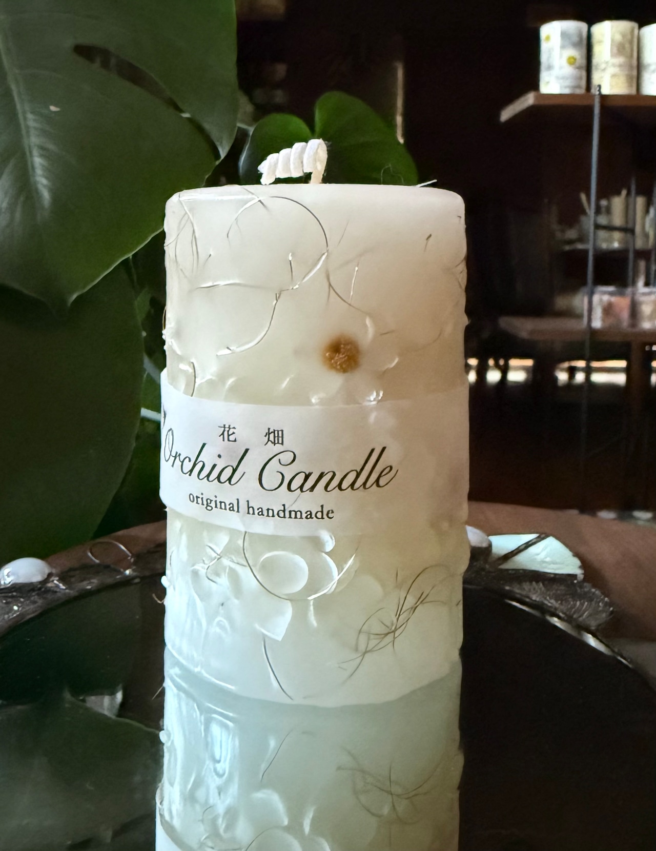 orchid candleオリジナル花畑®️アロマソイキャンドルは火を灯す部分100%ソイワックスを使用した環境に優しいキャンドルです。インテリアとして飾るだけでもいい香りが漂う、灯し終えても外側は残ります、LEDランプをいれてランタンとしてお楽しみ頂けます。アロマが心地よい香りを放ち、リラックスしたひとときを演出します。