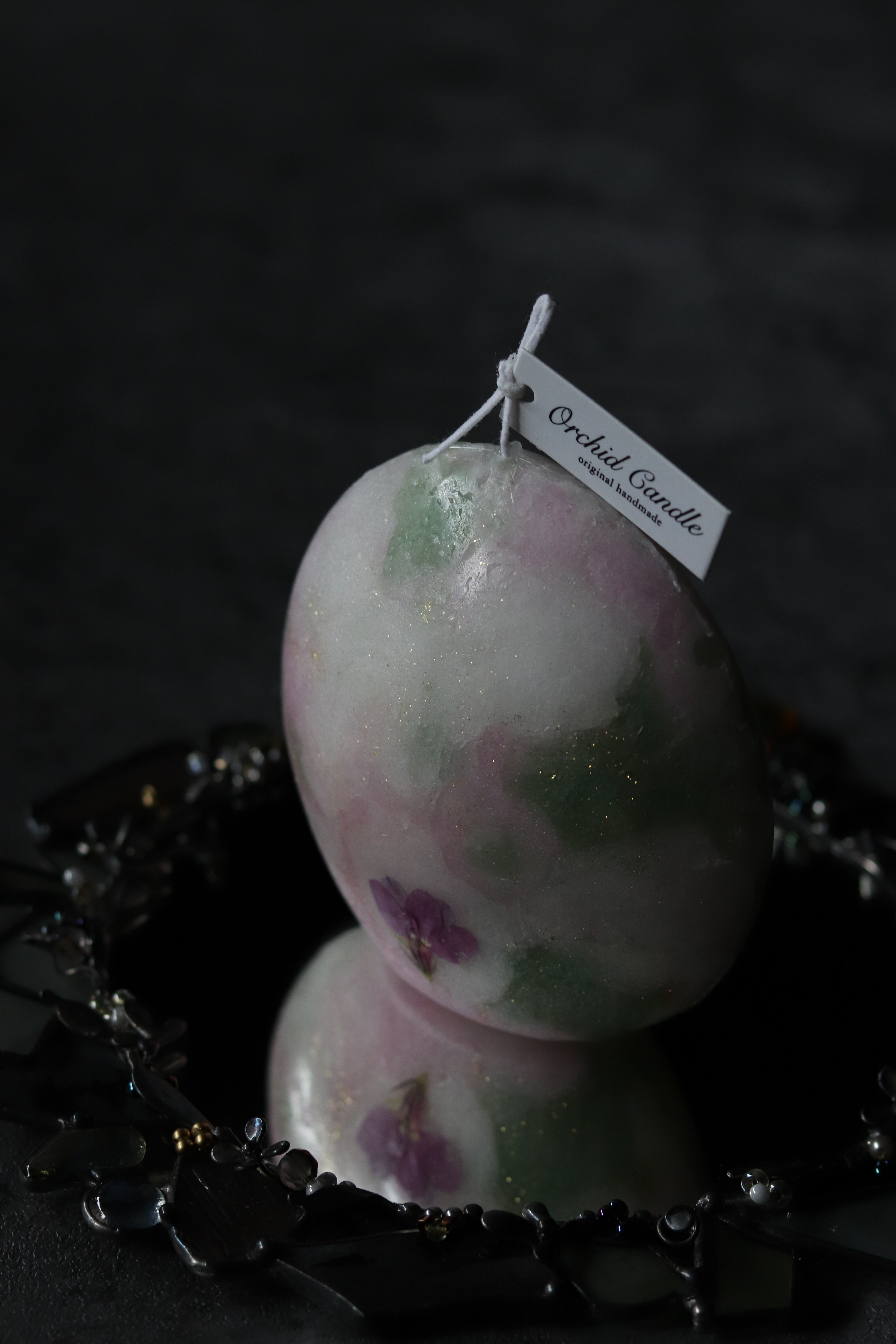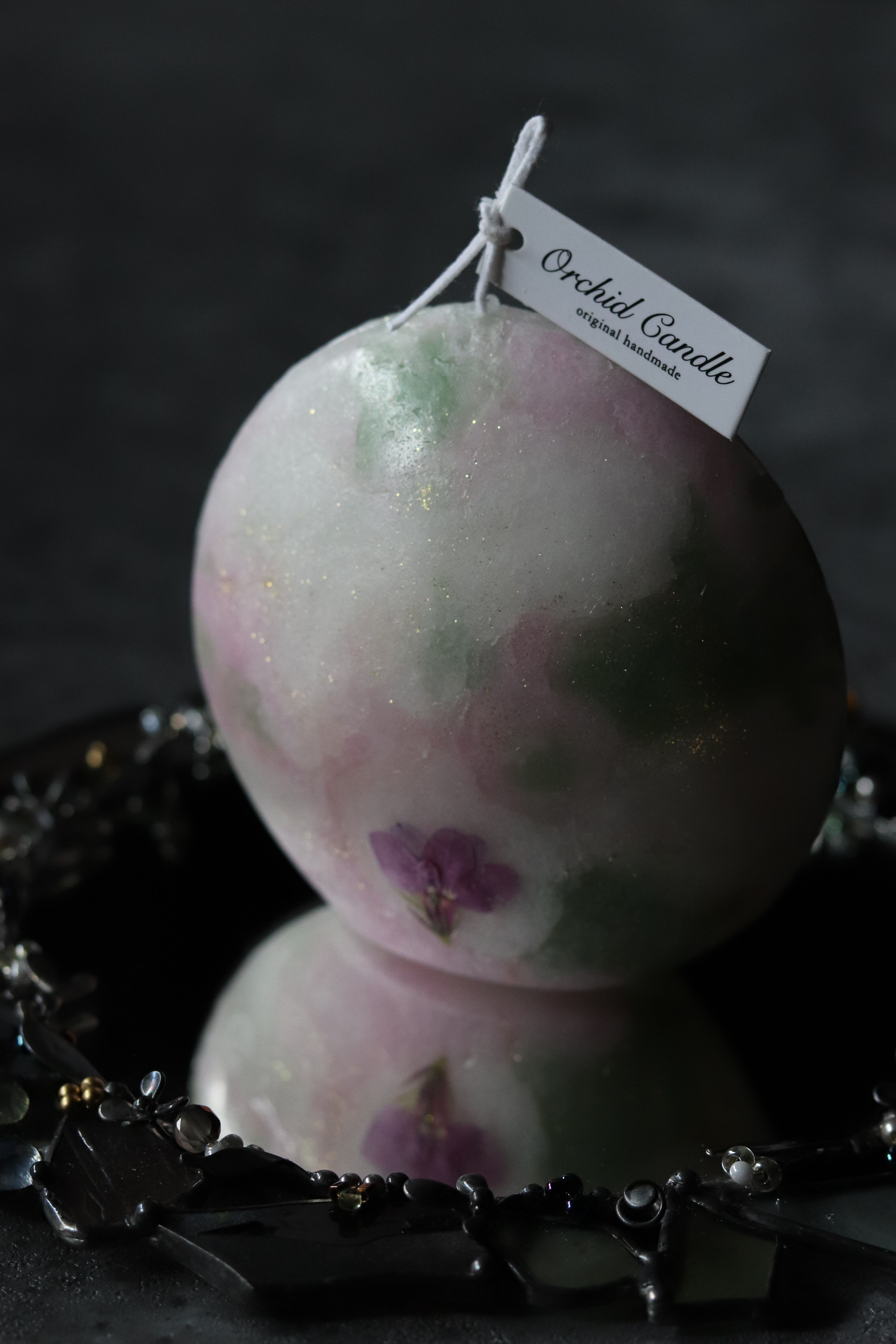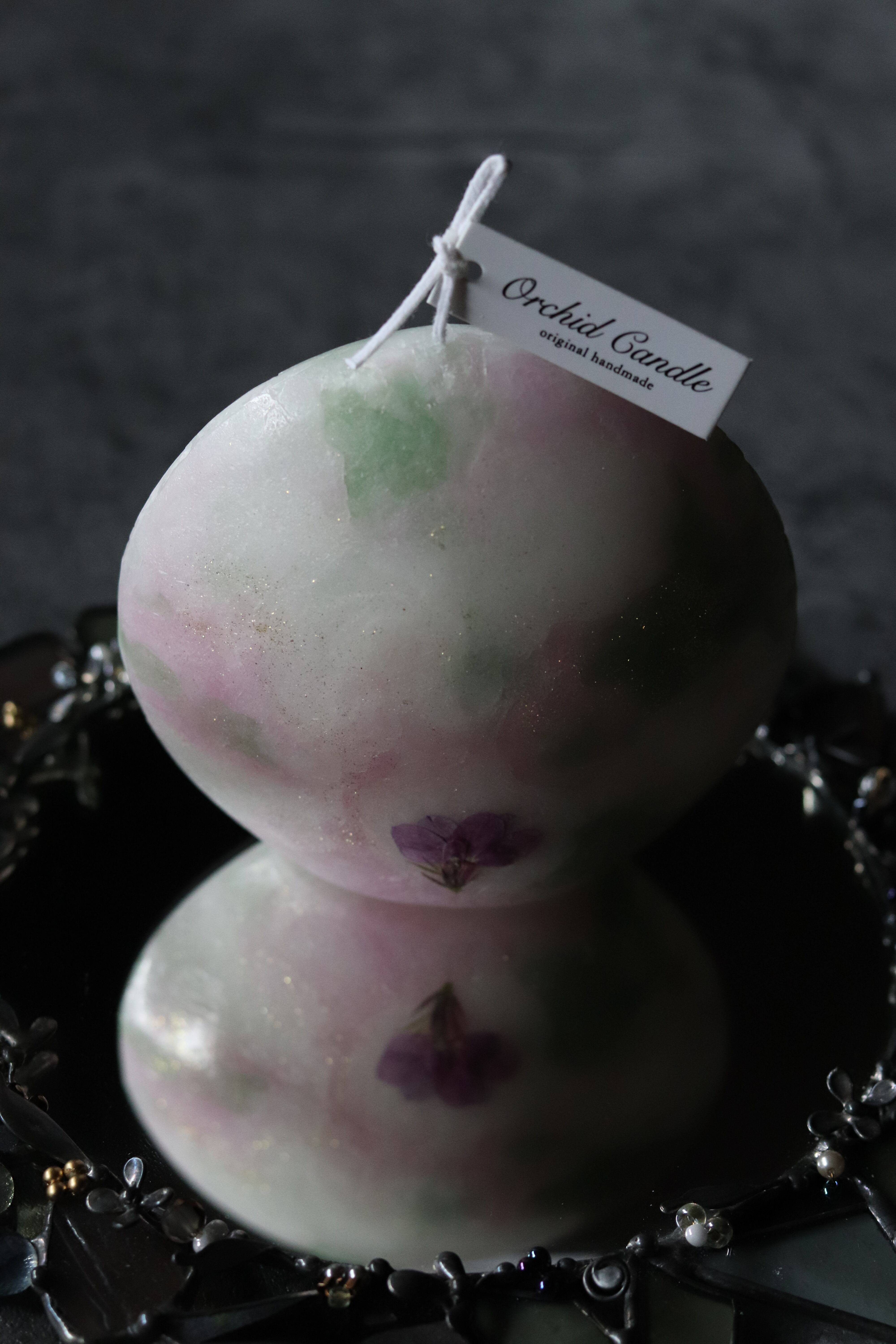 押し花マーブル三日月キャンドル